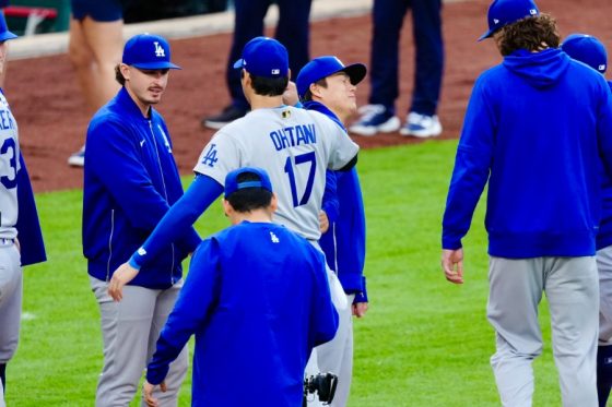 大谷翔平が“悪ガキ”発動「どついてるw」 由伸に不意打ち…お茶目なイタズラが「楽しそう」